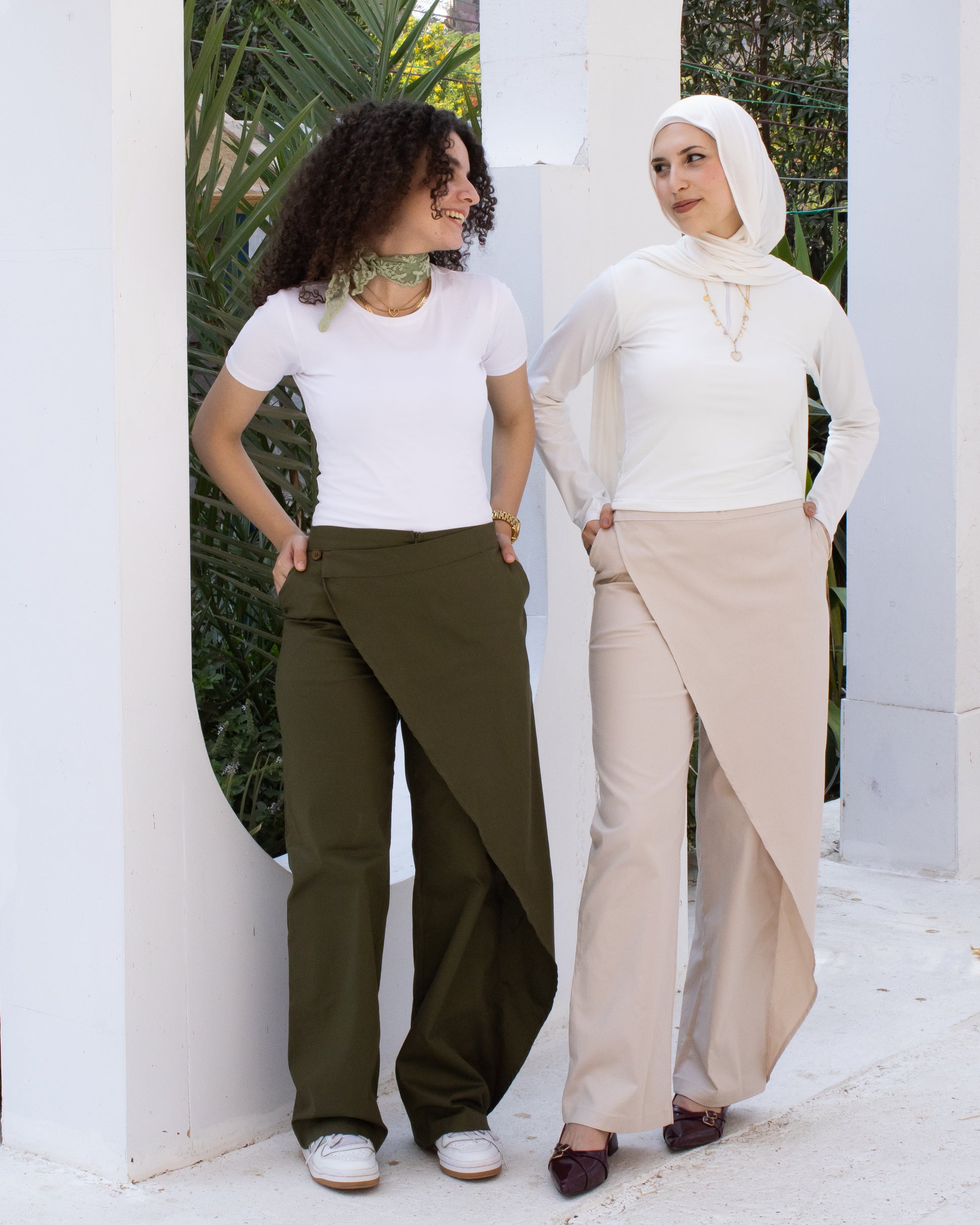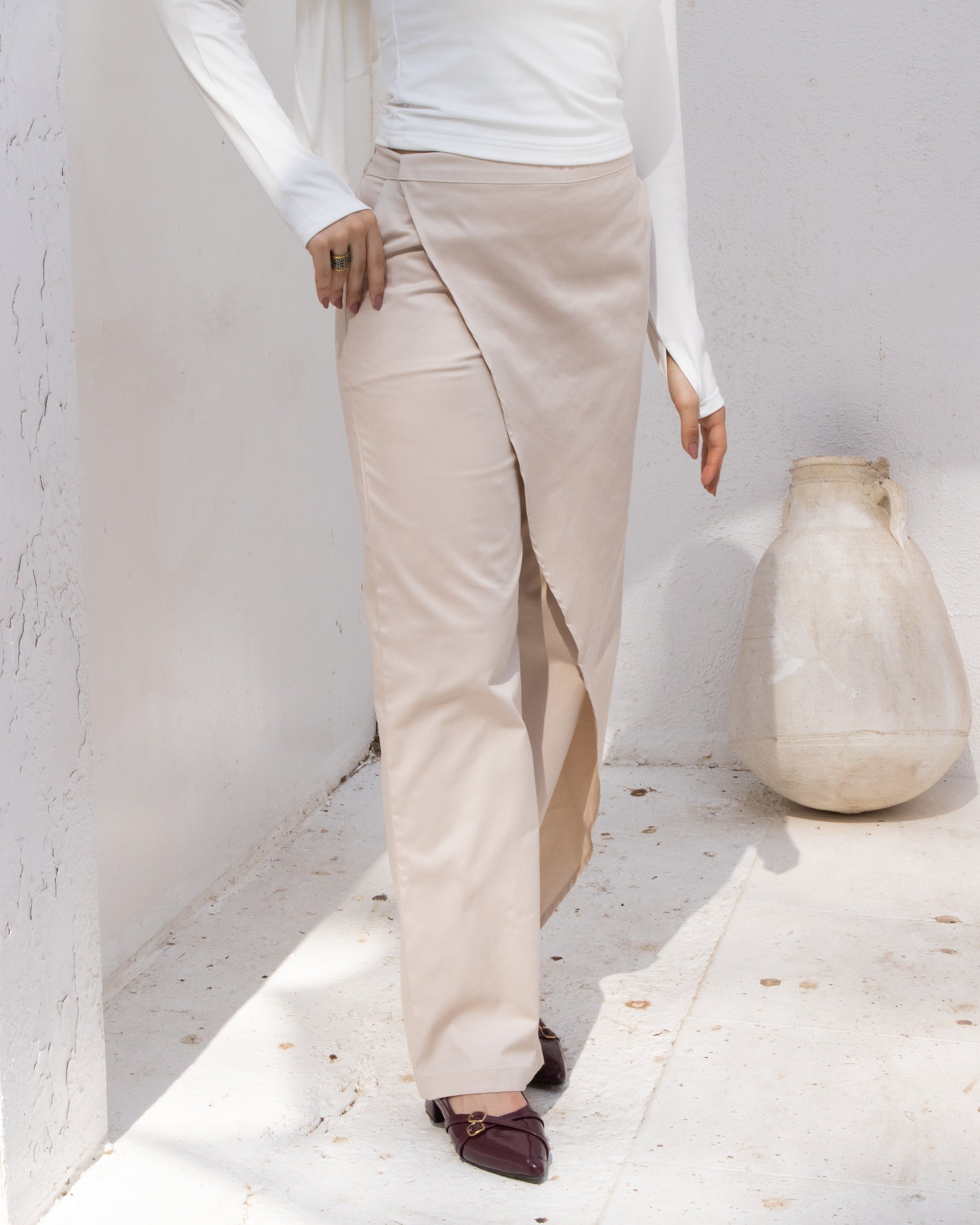 Sway Fold Wrap Pants – Beige
